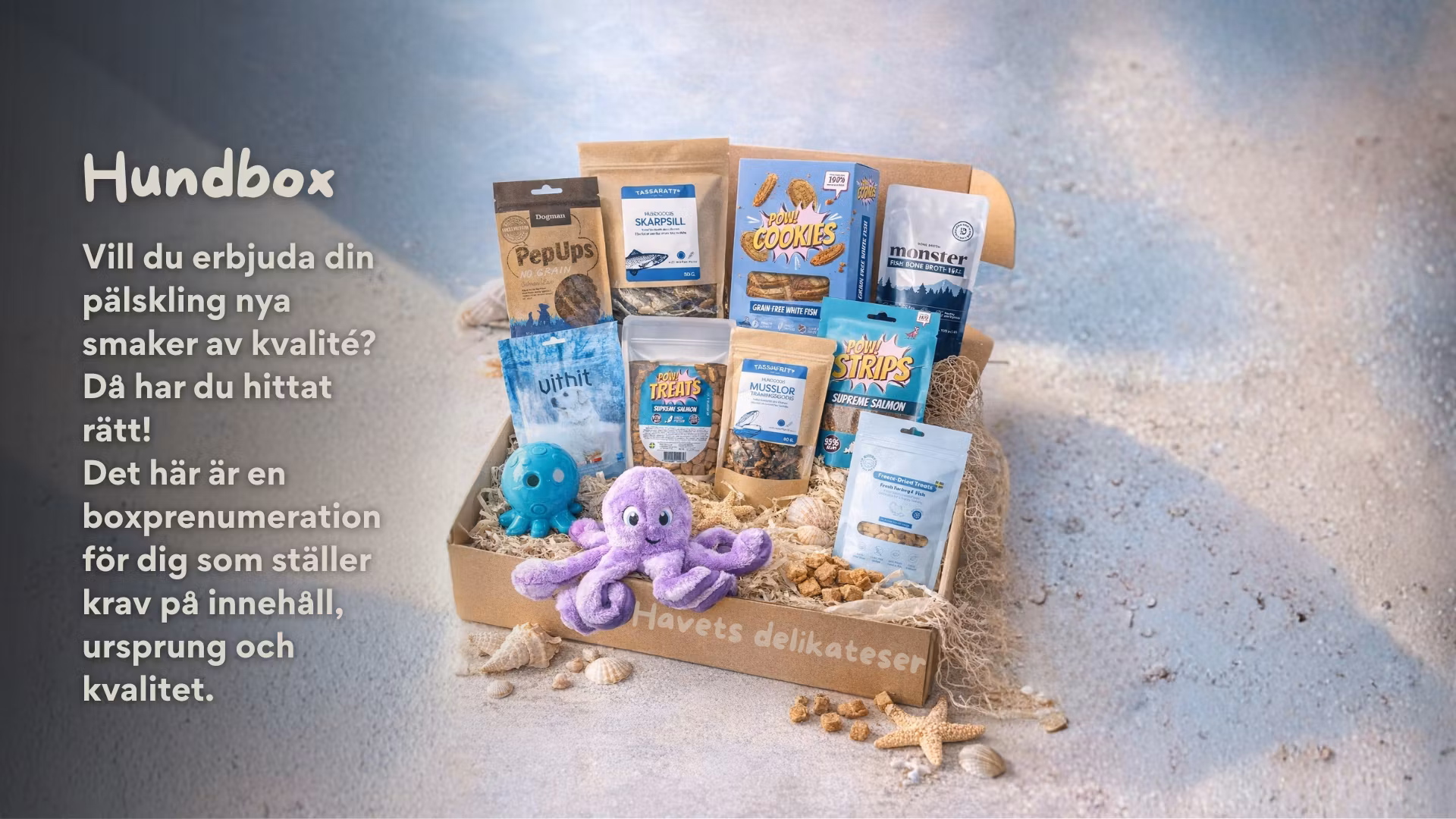 Den här boxen är för dig som inte kompromissar med kvaliteten på det din hund får i sig, men som samtidigt vill ha variation och glädje i vardagen!