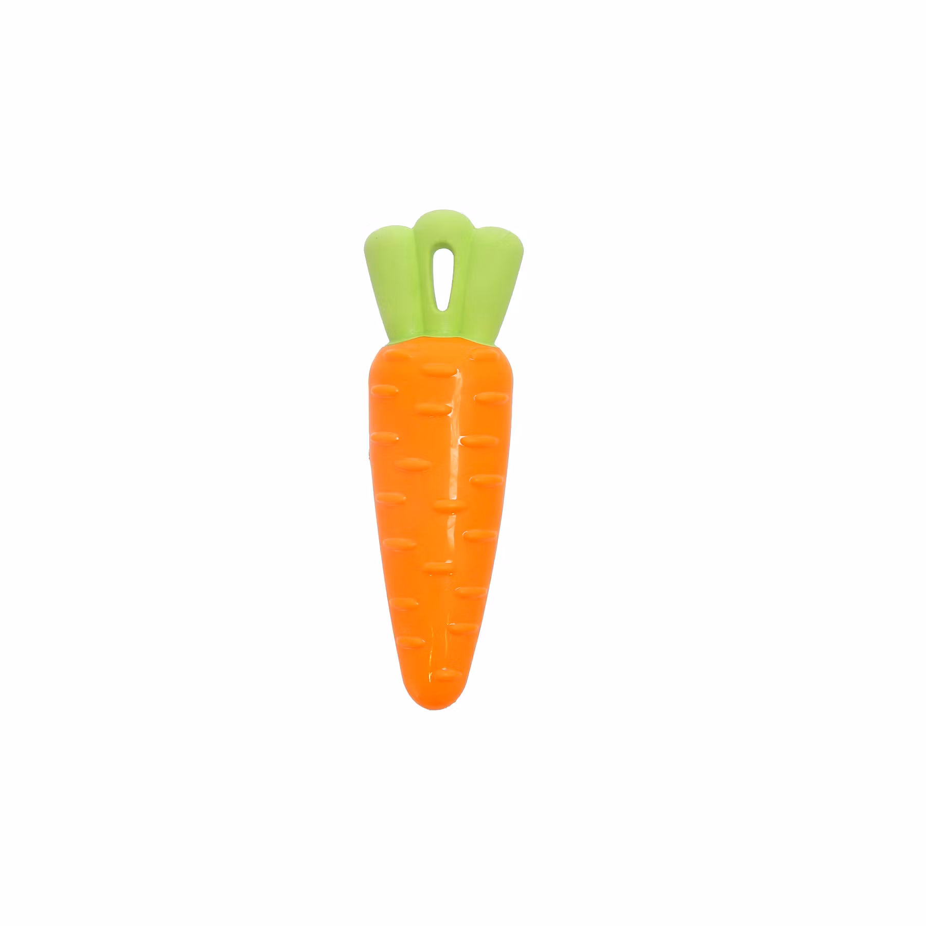 Tåligare pipleksak i tjock TPR. Läcker morot i en härlig orange färg. Innehåller pip.