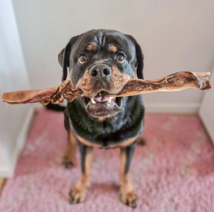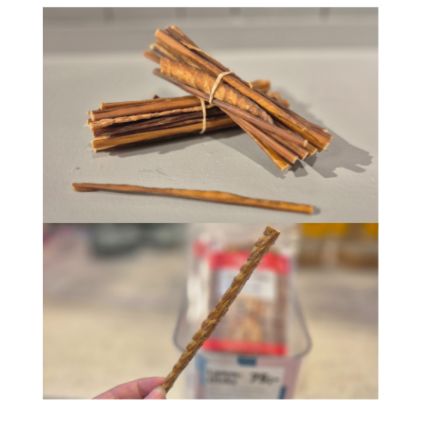 Nu kan vi glatt meddela att vi hittat ett jättebra substitut till "baconlindade", blekta kinka-kyckling-tuggben som inte kostar skjortan! Passar dem riktigt små hundarna upp till 5-6kg, för hundar större än så blir det mer av ett "snack"
